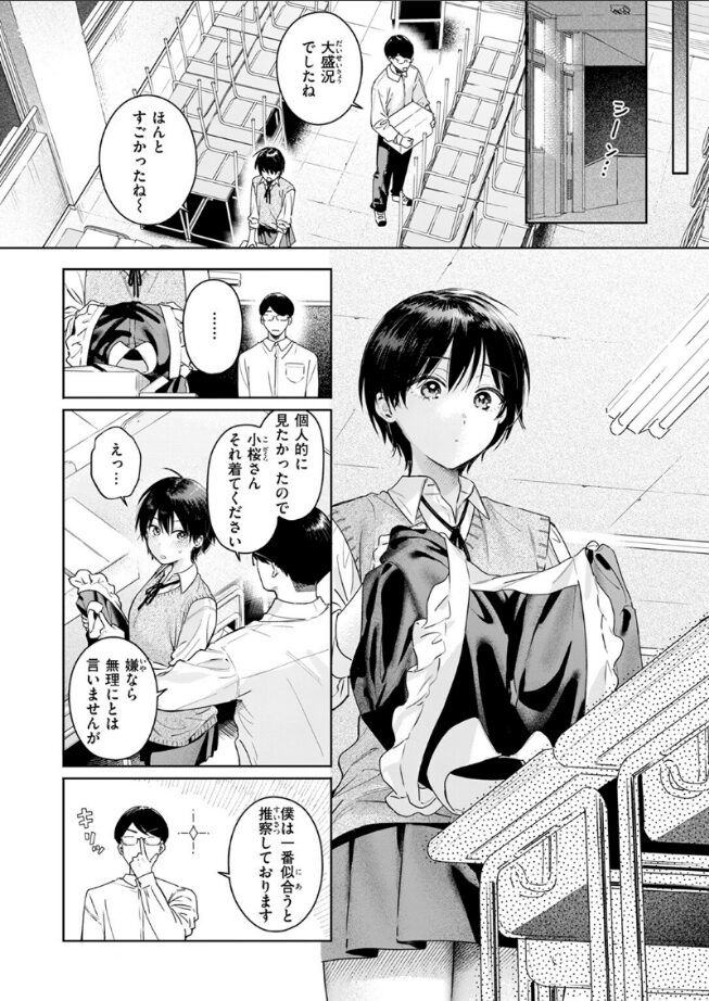 • ジャンル:恋愛 ,貧乳・微乳 ,コスプレ ,学生服 ,フェラ, 学園もの,スレンダー,女子校生,処女,メイド,手コキ