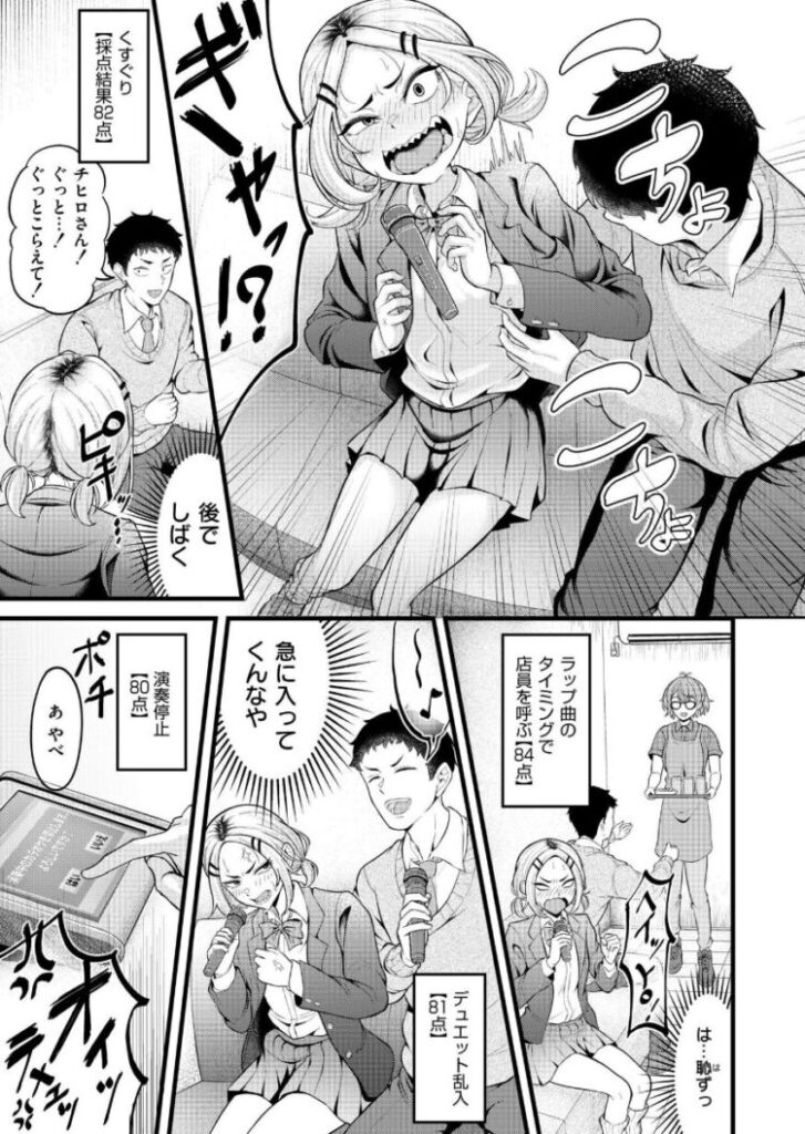 美少女ながらキレちらかすチヒロちゃんは、バイトの制服やレンタル学生服といったコスプレ風の衣装も着こなし、その巨乳を強調する姿は非常に魅力的です。イタズラやドジで僕を翻弄する彼女が、カラオケでの特訓中にスカートの下に手を入れられて激しく喘ぎ、快感で涙目になるシーンには度肝を抜かれました。