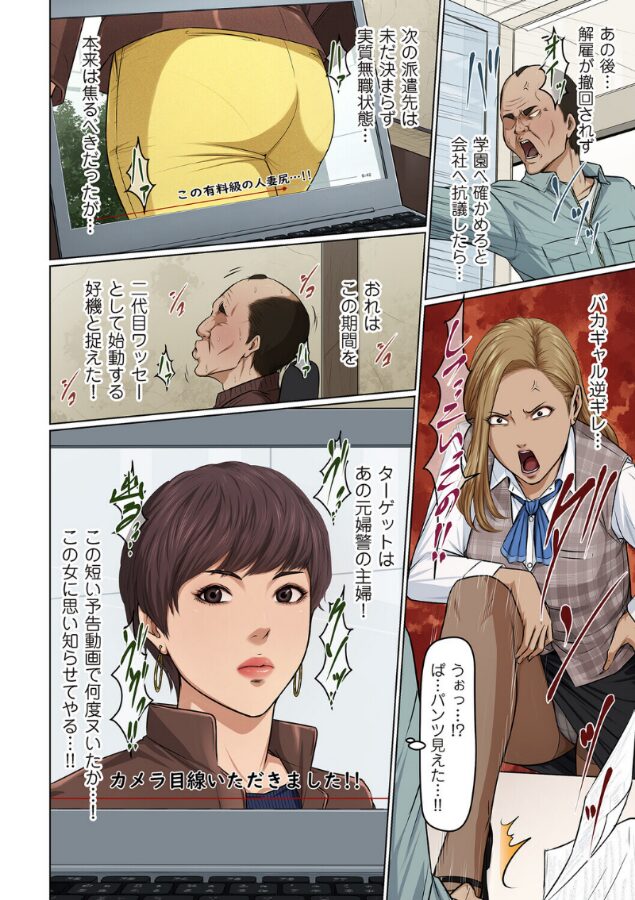 巨乳熟女であり元女捜査官という設定のヒロインは、これまでの怒りのすべてをぶつけられ、徹底的に鬼畜的な扱いを受けます。プレイジャンルには拘束羞恥ハメ撮りが含まれており、瀬羽は彼女の巨乳を弄ぶ手コキフェラを強要し、最終的に中出し に至るまで、執拗な暴力と性的な行為で彼女の尊厳を崩壊させます。この作品は、復讐心に駆られた男の歪んだ欲望と、元捜査官という強き立場から一転して屈辱にまみれるヒロインの姿を、鮮烈なフルカラーで描き切った、濃密な凌辱サスペンスです。