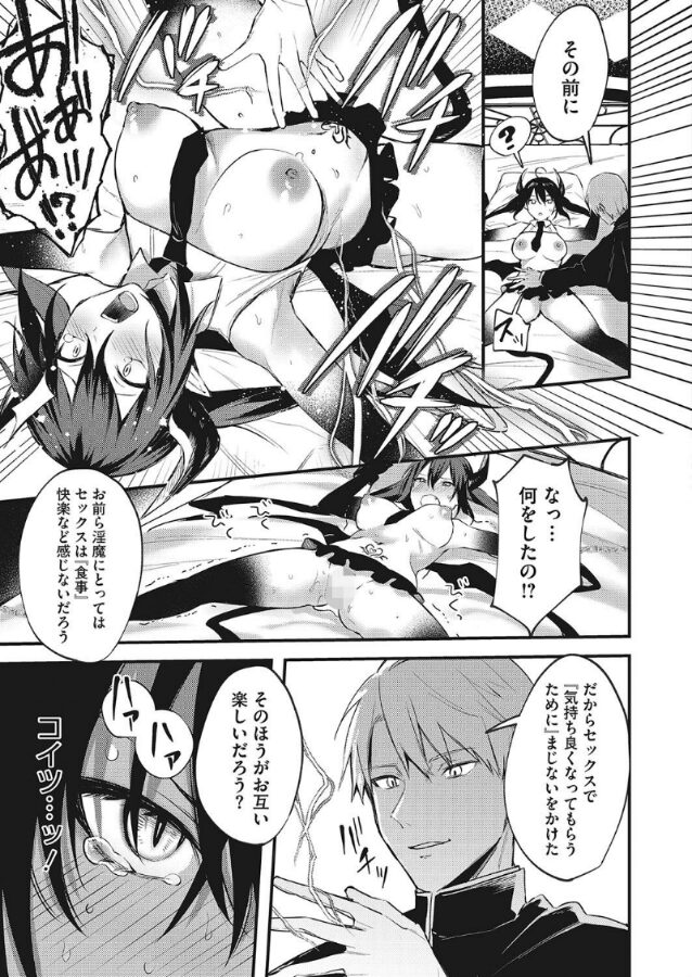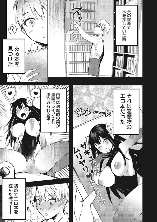 ついに退魔師は淫魔を捕まえた。ベッドに縛り付けた淫魔に、退魔師はセックスすると宣言する。退魔師は●●●の頃、父の書斎で淫魔もののエロ本を見つけ、それを読んで精通して以来、ずっと淫魔とセックスしたいと願っていたのだ。退魔師は淫魔にセックスで気持ちよくなるまじないをかけ、目の前に勃起したチ●ポを差し出し、しゃぶれと命じる。