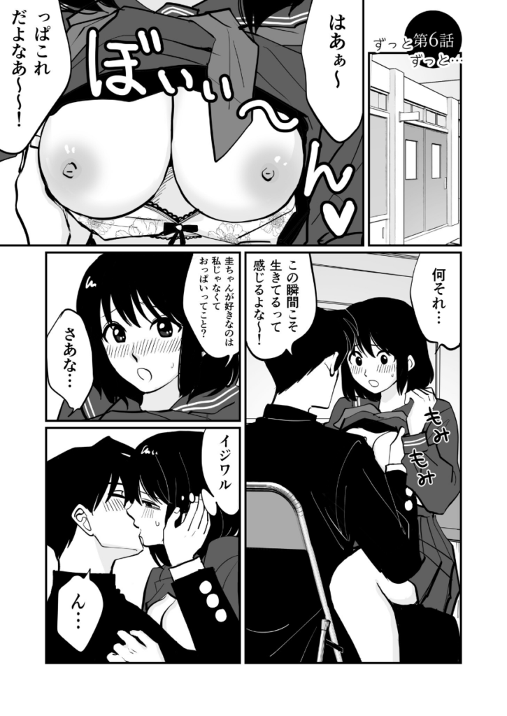 「はあぁ〜 っぱこれだよなあ〜〜!」空き教室でいつものようにSEXをする圭一(けいいち)と春(はる)。こんな関係がずっとずっと…続くと思っていた。チャイムが鳴り響き慌てて教室へと戻る二人春が何かを伝えようとしていることを察した圭一は無理に聞き出すことはせず「あとで聞くよ」と伝えたが…別れ話と思いだんだんと不安が押し寄せていたそんな彼の元へ姿を現した春は圭一に生理がきていないことを伝えた。「圭ちゃんは…責任取ってくれるよね?」しかし、今の圭一はただの学生責任なんて言われても、いったい何ができるというのだろうか…「スマン…」それからというもの、圭一はよそよそしくなり春から声をかけても言葉を濁し、さっさと帰ってしまう。まるで、春との関係を絶とうとするかのように…圭ちゃん…私 一人でどうすれば良いの?果たして二人の青春のひと時は、どうなってしまうのだろうか… 最終話 1X才〜ずっとずっと…〜