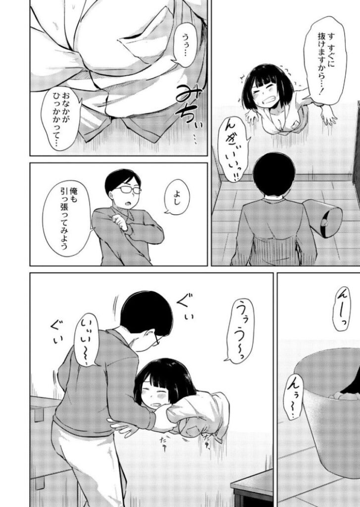 陰キャ地味子が壁を突き破って現れた!?アパート壁にあった穴を修復しようとして、勢い余って壁を突き破ってしまった栞(しおり)。お腹がひっかかって壁から抜けることもできず、大きなお胸とお尻は無防備な状態に!そんな状況を性欲旺盛なお隣さん(男)が見過ごせるはずもなく…!