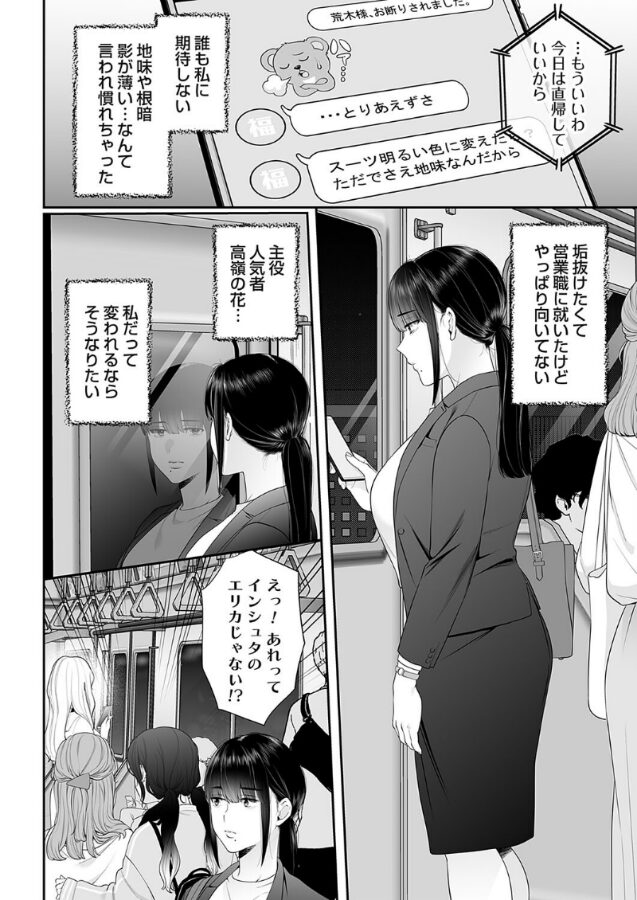 甘い言葉で心の隙間を突き堕とす御握むすびが、地味陰キャ生保レディをちんぽで輝かせる!パッとしない見た目と大人しい性格から、営業成績が伸び悩む小島冴子(こじま・さえこ)。今日も営業は上手くいかず上司からも呆れられる。電車で直帰中、車内でイケメンとぶつかってしまう。しかし満員でもないのに、何故か冴子の後ろにぴったりつける距離の近い男。すると男のスマホが冴子の真下に落ちたと思ったら…シャッター音!?チラっと男のスマホを覗くと、なんとパンツスカートの中の写真が。こんな私にも魅力があるってこと…?翌日からミニスカタイトなスーツに新調した冴子。そしてその下はノーパン。一度満たされた承認欲求が忘れられず、同じ電車に乗り込む。再び現れた男の前だけでゆっくりと足を開き、ぬるぬるマンコを見せつける。駅のトイレに連れこまれた冴子は業界人が集う特別な撮影会に誘われる。髪を下ろした冴子は乳首にバッテンテープ、Tバックと網ストッキングでおじさんたちをお出迎え。今日のために剃毛し、隠しきれないハミマンとアナル皺。巨尻と長乳、身体の隅々にローションを塗り込まれて撮影は盛り上がっていく。ずっと脇役だった冴子は初めてスポットライトを浴びる自分に、身も心も昂揚していく。