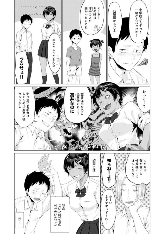 高身長JKの姫華と低身長の洋平は幼なじみだったが、性欲の強い姫華に誘われ、なし崩し的に肉体関係をもっていた♪しかしテスト期間でしばらくヤッていない2人は、悶々とする毎日を送っている…。お互いにガマンが効かなくなり、テスト最終日ついに姫華と洋平は学校のトイレでおっぱじめることに!?九十九弍級先生が放つ、逆身長差カップルのワイルドセックス!