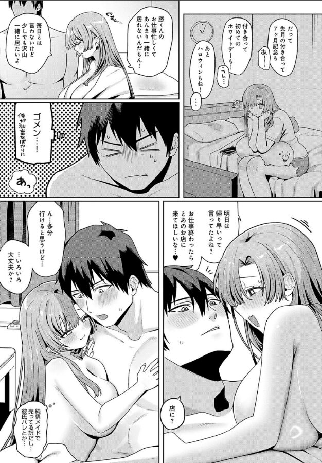 俺の恋人・とあは、メイドカフェでバイトをしている。ある日、お店に来てほしいとお願いされ、バイト先のメイドカフェを訪れると……とあは接客中にもかかわらず、机の下に潜り込み、俺のベルトを外してきて!? 周りにバレないよう優しくフェラチオされ、思わず口内射精してしまう。精液を口いっぱいに受けた彼女は、興奮に潤んだ瞳で俺を見つめて…… 「ご主人様と エッチの続きしたいです…♪」可愛い彼女のおねだりに抗えるはずがない!! とあのファンに隠れ、カフェの男子トイレで後半戦に突入–☆やわ肌界の乳スター・朔羽さいが先生が描く、大胆な恋人メイドさんにご奉仕される甘いひととき♪