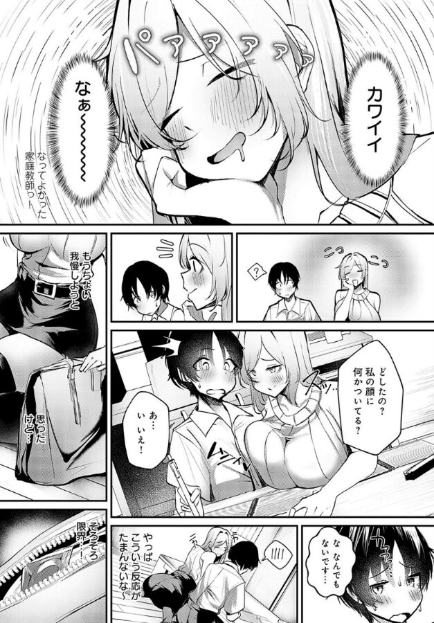 巨乳美人家庭教師・和泉の趣味は、生徒の童貞を奪うこと♪ ゲーム好きな生徒・賢治が自分のおっぱいに夢中だと察した和泉は、さっそく彼の童貞をいただくことに…♪ おっぱいを押し付けられてあっさり勃起した賢治に、手マンのやり方を身体で教えてあげる和泉…だったが、なぜかすっごく感じちゃう!? ゲームでできた賢治の手のマメが和泉の弱いところに当たる! しかも「格ゲーに似てる」とすぐに手マンのコツを掴んだ賢治は、童貞なのに和泉に潮まで吹かせちゃって!? 悔しい和泉は「こっちじゃ負けないから…っ」とマ○コを差し出すけど――?淫乱積極女子の金字塔・けーしむ先生が描く、ゲーマー童貞があっさり攻略しちゃう巨乳教師の弱いトコ♪