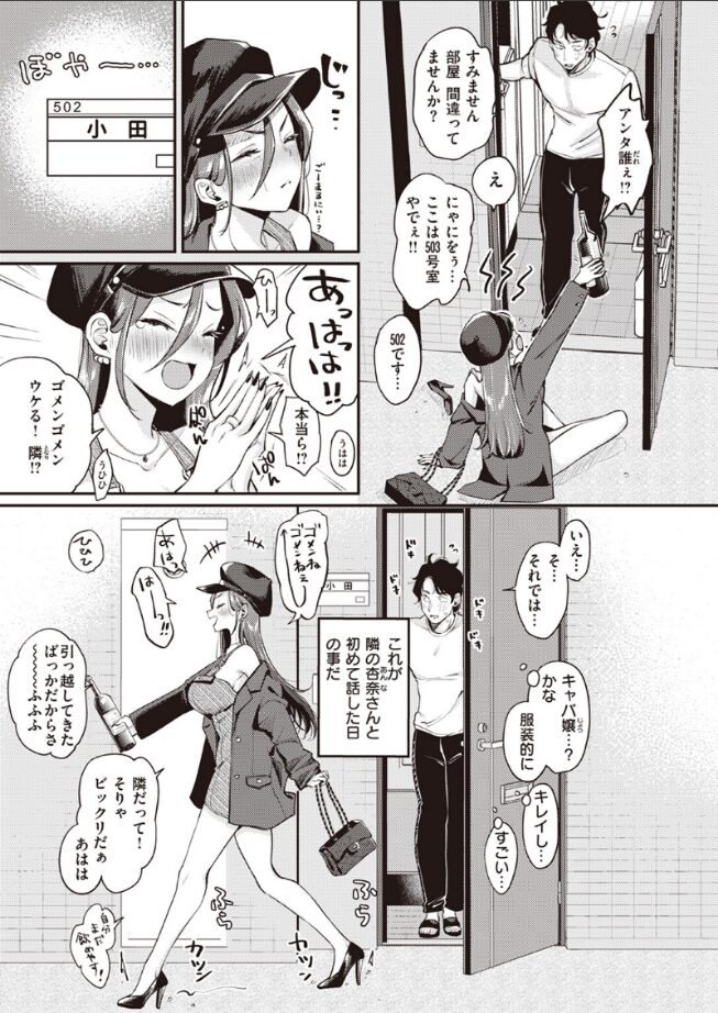 「ね シちゃおっか♪」ある夜、主人公の部屋にやってきたキャバ嬢の杏奈(あんな)さん。引っ越してきたばかりの杏奈さんは、酔っ払って部屋を間違えては勝手に喋って帰っていく。また別の日の夜、いつものように泥●した杏奈さんは泣き出してしまい……とりあえずと部屋に入れるとムラついた彼女に襲いかかられて!?