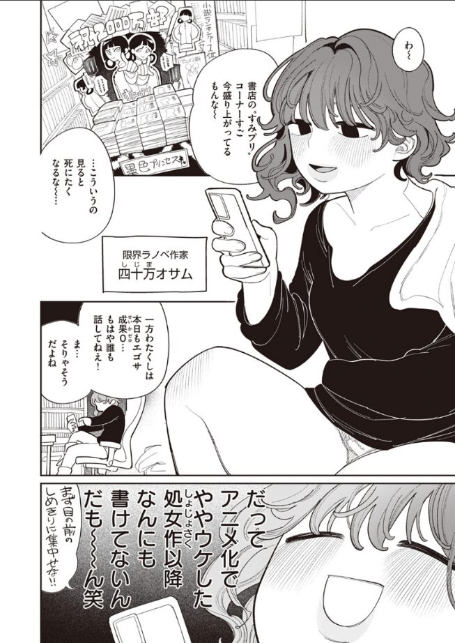 (こんなやつとこんなセックス…ッ♪ していいわけないッッ)処女作が当たって以降、2年間なにも書けていない限界ラノベ作家・四十万(しじま)。あまりにも限界な彼女はつい軽い気持ちで、定期的にDMを送ってくるファンの男と会ってしまう。今の自分にがっかりされに行ったつもりだったが≪センセイは僕の神さまです≫と言ってはばからないその男に体を許し――