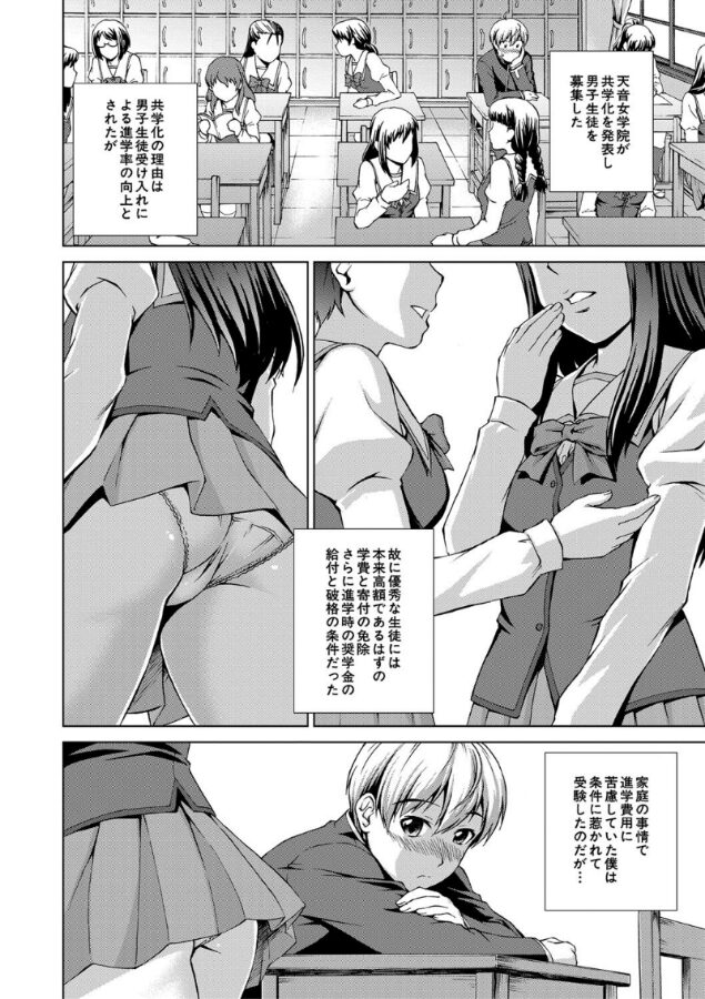 【第1話試し読み付き!!】女子校に男一人!!!JKハーレム開校!!!「天音女学院」。歴史は古く、名家の子女のみ入学を許された高貴なる学び舎。そんな名門女子校に…ボクは入学した!!!お嬢様たちは初めて見る男のチ〇コに興味津々。ついにはみんなでボクを射精管理!!!今からこのクラス30人と…犯る!!!【収録作品】1 ボク女子校に入学しました2 男の子ってむずかしい3 おち〇ちん管理委員会4 ボクハーレム王になります【通常特典】メッセージペーパー2種