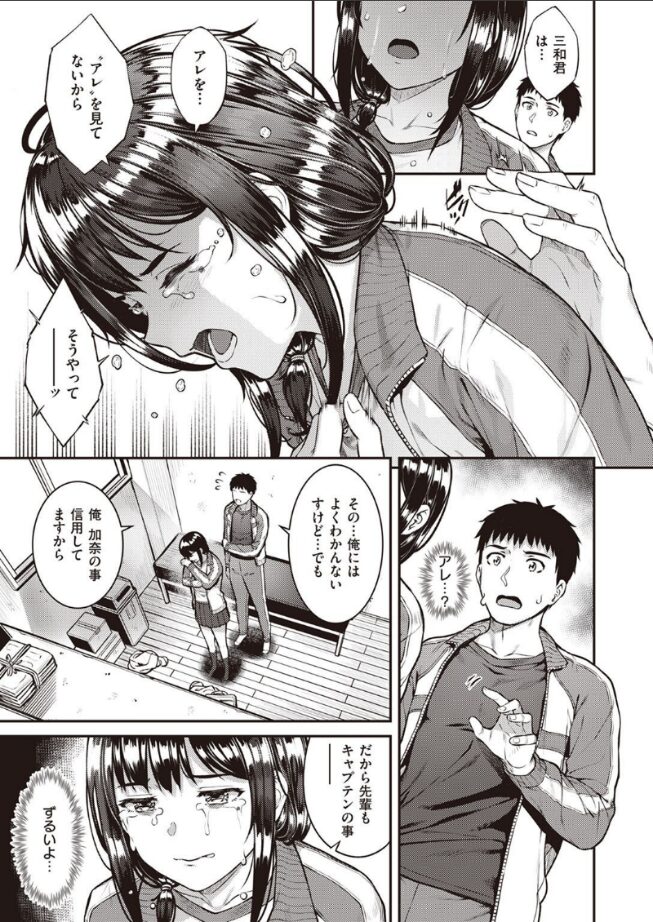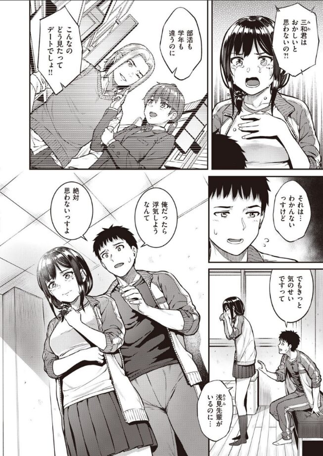 彼女の加奈が部活のキャプテンと浮気をしている……教えてくれたのは、そのキャプテンの彼女の浅見先輩だった。取り乱した浅見先輩から迫られ、涙ながらに無理やり童貞を奪われてしまって……。失恋した男女が織りなす、やるせない性衝動。