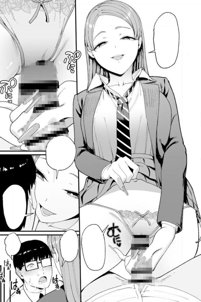 | 手コキのシーンの時の手の動きが繊細に描かれていて、ヒロインの宮下花音のテクニシャンぶりを完璧に表現できていましたし、作者の画力の高さに魅了されました。手コキの後で手に付いた精液を花音が舐め取るシーンもエロくて興奮しました。 手コキの後のフェラのシーンでは花音の舌使いや、バキュームすることで頬が窪んでいる表現が秀逸でしたし、オタク君のリアクションもしっかり描かれているので没入感がありました。 後半の騎乗位でのHシーンの時に激しく突き上げられて、これまで余裕の態度を取っていた花音が激しく感じまくるシーンが可愛くて思わずギャップ萌えしました。 終盤の寝バックや背面側位の体位でのHシーンでは、花音の股が大きく開かれていてエロかったですし、肉感的な女性器に男性器が激しく出し入れされている描写の迫力に圧倒されました。 |