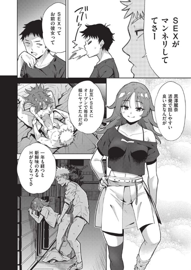 とある二組のカップル。一方は真面目同士な男女で、もう一方はやや派手目という組み合わせ。だがそれぞれのカップルは最近SEXがマンネリ化している事に同じく悩んでいた。そこで思いついたのがWデート。一緒にデートすることでマンネリ脱却を目指すのだ。ところが楽しいデートの最中、観覧車に乗る時にアクシデントが起きた。急いで乗せられた為、違う彼氏彼女同士で乗せられてしまったのだ。狭い個室でしかもパートナーとのマンネリ化という問題もあり、自然と踏み込んだ雰囲気に…。友人の彼女という背徳感に興奮を感じながらその身体に手が伸びていくのだった──。