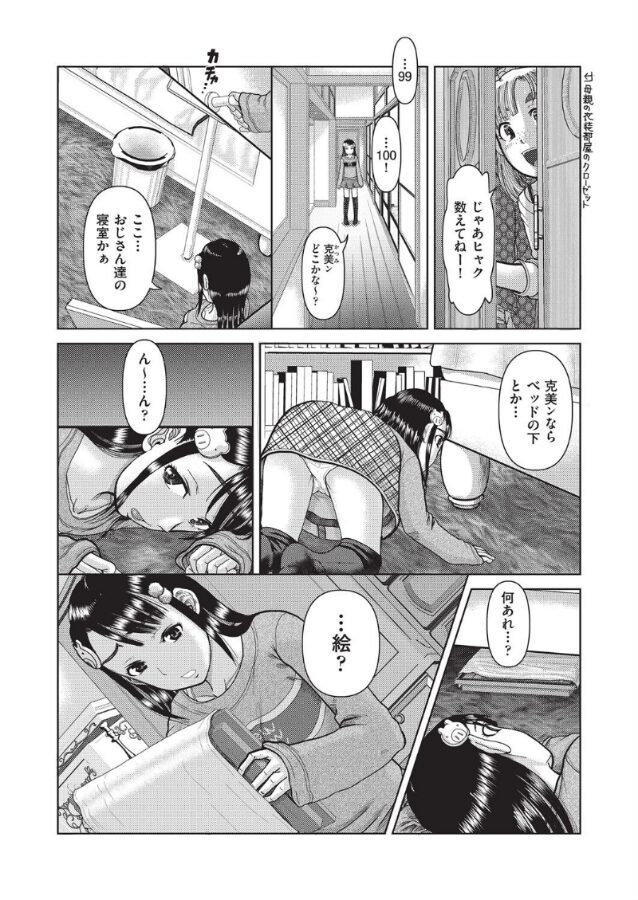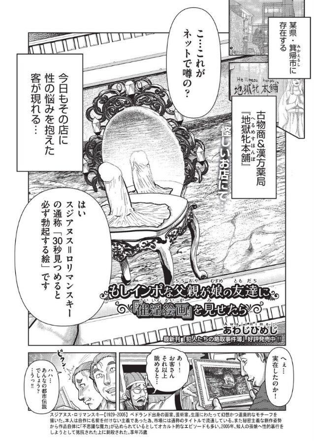 怪しげな古物商にて《見つめると催淫効果がある》という絵画を購入する男。婿養子だった男は妻に見下されることが多く、夫婦間の問題解消のために絵画を使おうとしていた。だが娘の友達が遊びにきた時に部屋に置いていた絵画を見られてしまい催淫状態に陥ってしまう。とりあえず慌てている娘をパパが何とかするからと階下に追いやり、目の前ですっかり発情している娘と同じ歳の少女にニヤリとする男だった…。