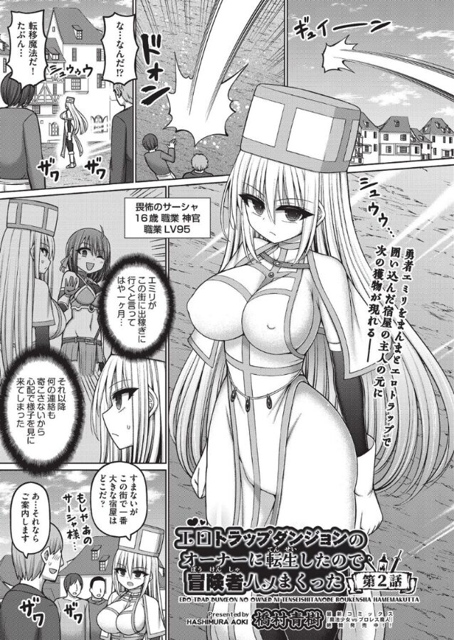 ひょんなことから異世界に転生し宿屋の主人に転生してしまった男。有名な冒険者の勇者エミリをまんまと「一日一回セックスしないと死んでしまう」呪いをかけ性奴●に成功。しかしエミリとしばらく連絡が取れなくなった事を心配したサーシャが訪ねてくる。魔力のレベルが低くなったエミリの代わりにダンジョンを攻略するコトになったサーシャと宿屋の主人は2人で前に進むと、宿屋の仕掛けたトラップを利用してエミリ同様にサーシャにもエロいコトを仕掛けてゆき…!?