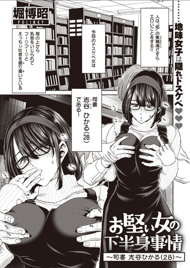 「ごめんね……こんなにえっちな女で――」今回のドスケベ女は、司書・志谷(したに)ひかる。大人しく理知的な見た目とはうらはらに性欲は強く、服の上から乳首をいじられただけで熱い吐息を振りまいてしまうほど。特に最近ハマっているのは職場である図書館で大好きな年下君とする秘密のSEX。誰かに見られてしまうかも……スリルに後押しされ、感度も興奮も爆上げ!!今日もまたおバカになってしまうほど変態行為に耽る!!