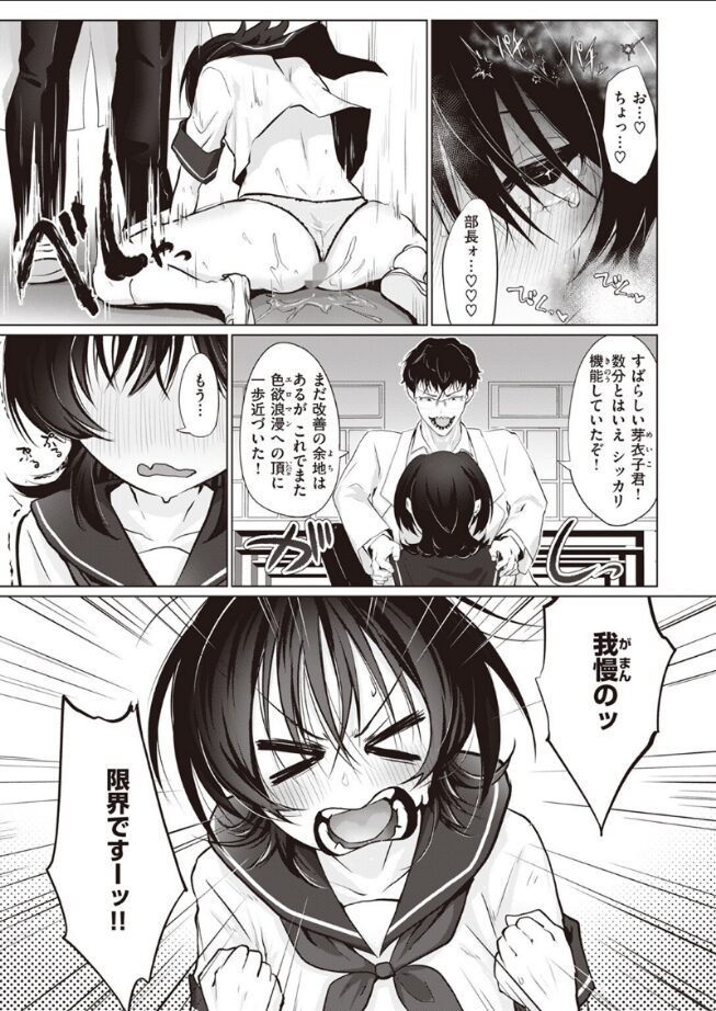部長さんは空間転移装置(女性の膣内に物質を移動できる)とか、時間停止時計(エロ目的)など、SF漫画で通用するほどすごい技術を持っているのにそれらすべてがエロに傾いていて被害を受けているのは入部した主人公の女性なんです。