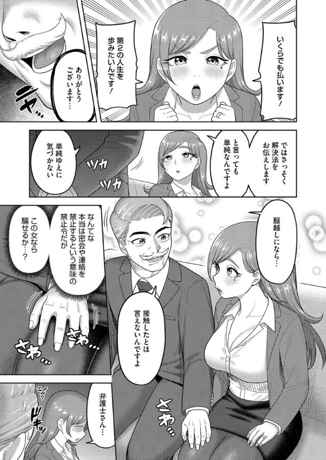 美人で巨乳、夜の相手としては完璧な女だけど、「妻」としては大きな問題を抱えている。それは異常なまでの男好きということ。ついに夫から自分以外の男性との「接触禁止令」が出てしまったので、困り果てて弁護士のもとを訪れる