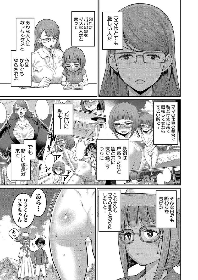 転校してきてからもみんなのHの輪に入れずにいたユキだが、Hなことへの興味と厳しい母からの自立心で、ルリちゃんママ指導のもとついに全裸野外SEXに挑戦することに!