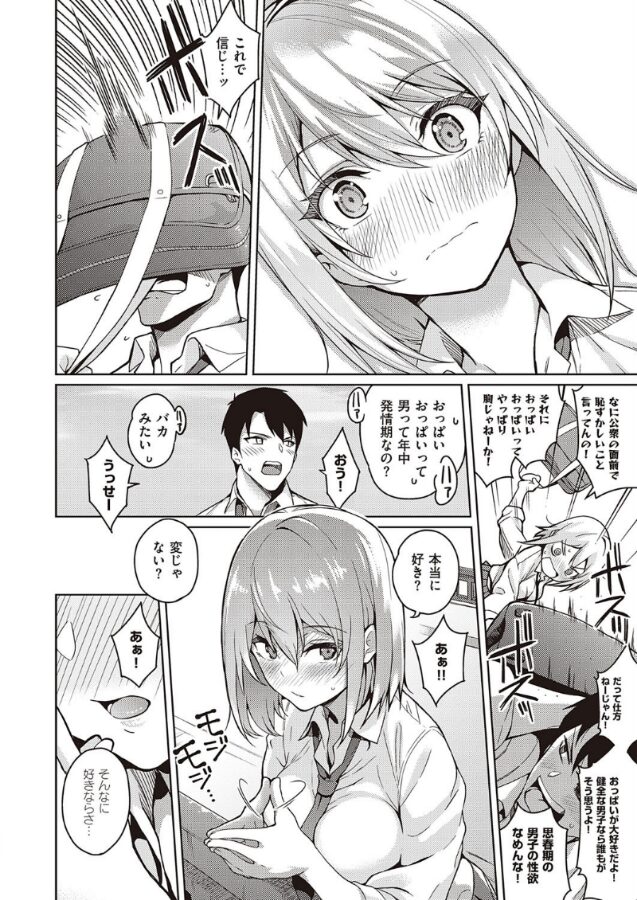 クールで巨乳な強面美少女・古宮楼花は人嫌い。その原因は思春期に主人公から巨乳をからかわれたことだった。そんな楼花を心配した主人公は、橋の上でおっぱい愛を叫ぶ!!真っ赤に頬を染めた楼花は主人公を公園のトイレに連れ込んで–!?栗原ケンシロウ先生が描く、不器用なデカパイJKとの性春恋模様♪