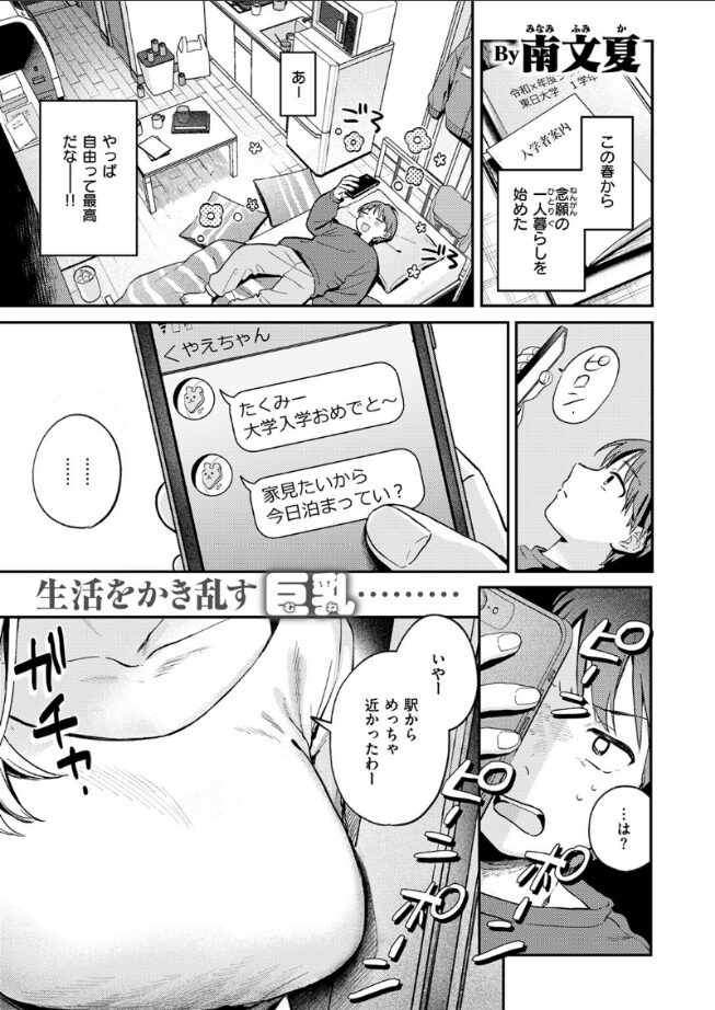 | Hシーンに至るまでの妙に生活感溢れる感じがとても良い。 だらしの無さそうな年上の幼馴染が相手なのだが、この幼馴染の「ちょっと駄目そうな感じ」がなんだかエロい。 一人暮らしを始めた主人公の部屋に上がりこんできてノーブラでそのまま寝てしまう感じ。 異性である事を意識してないだろう・・と思わせてからの急展開してHシーンなのでとても興奮させられた。 Hシーンに至る所ではあえてセリフが少なく描かれている。 この二人が幼馴染で部屋に警戒心なく上がりこん来てしまう間柄である事を考えればとてもリアルで生々しさを感じるはずだ。 プレイ自体は実にノーマル。しかし、そこに至るまでの過程を考えるととても興奮させられる。 二人はただの幼馴染で血の繋がりこそないものの、なんだかいけない事してしまう(一線を越えてしまう)感じが出てて良かった。 |
