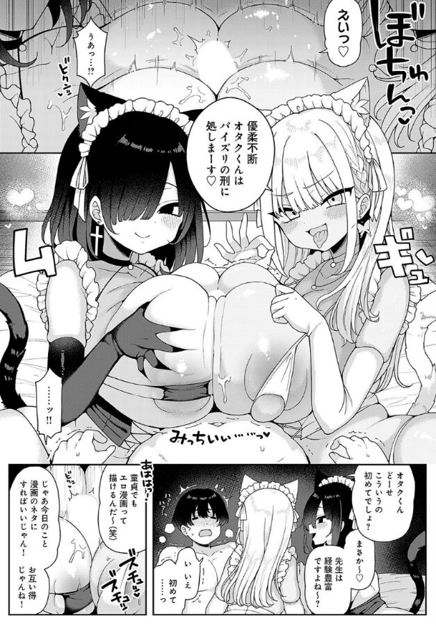 エロ同人作家の俺は、同人イベントでコスプレ売り子さんを募集することに。当日やって来たのは、白ギャル・もちねこと黒ギャル・アゲハの二人組だった!イベント後、謝礼が少ないと文句を言う彼女たちは、俺をオフパコに連れ出して!? 射精1回3万支払う代わりに、プレイはなんでもあり♪たわわなおっぱいに包まれるWパイズリからナマ中出しまで!エロかわギャルたちが競って搾り取ってくる夢のようなエッチに、理性も財布も限界ですッ!!ムチムチ生意気ヒロインの名手・あらと安里先生が贈る、白黒ギャルのドスケベ搾精オフパコ☆