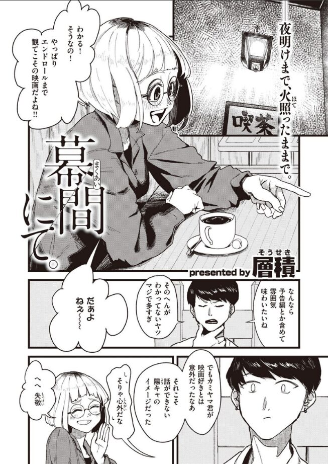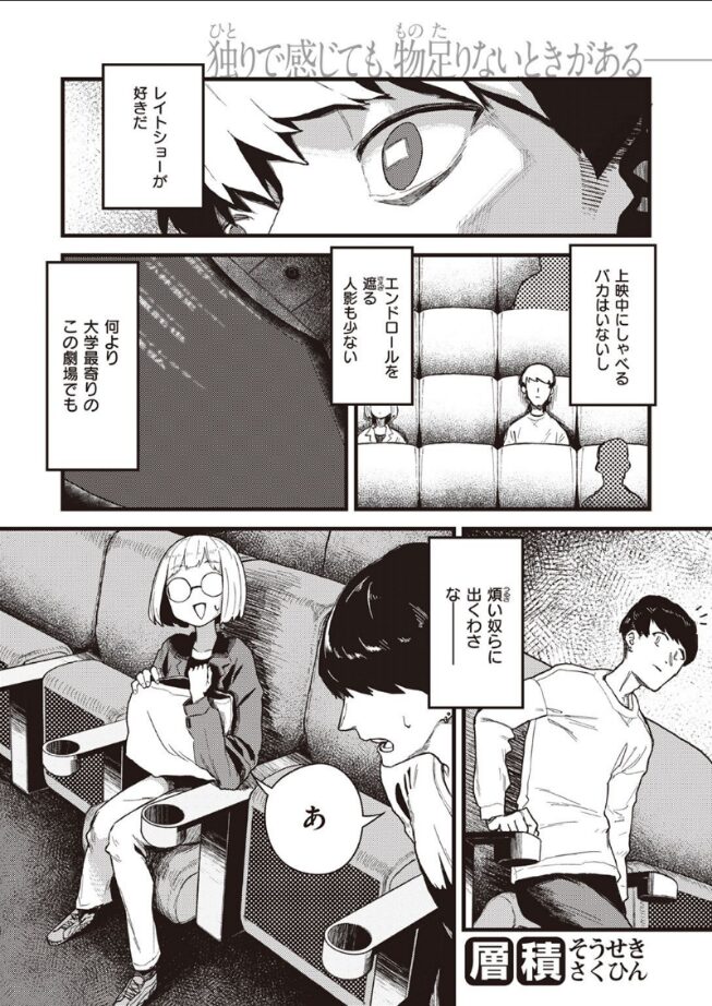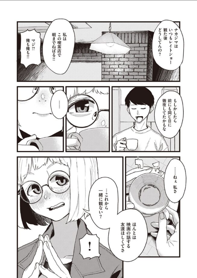 趣味合う同志は、カラダの相性も抜群ッ!!映画館のレイトショー鑑賞という共通の趣味から、意気投合した大学生の男女二人。デートを重ねるうちに、だんだんと距離も近くなっていき……!?丸メガネのサブカル女子と一緒に、映画&性交漬けの日々を送る!!