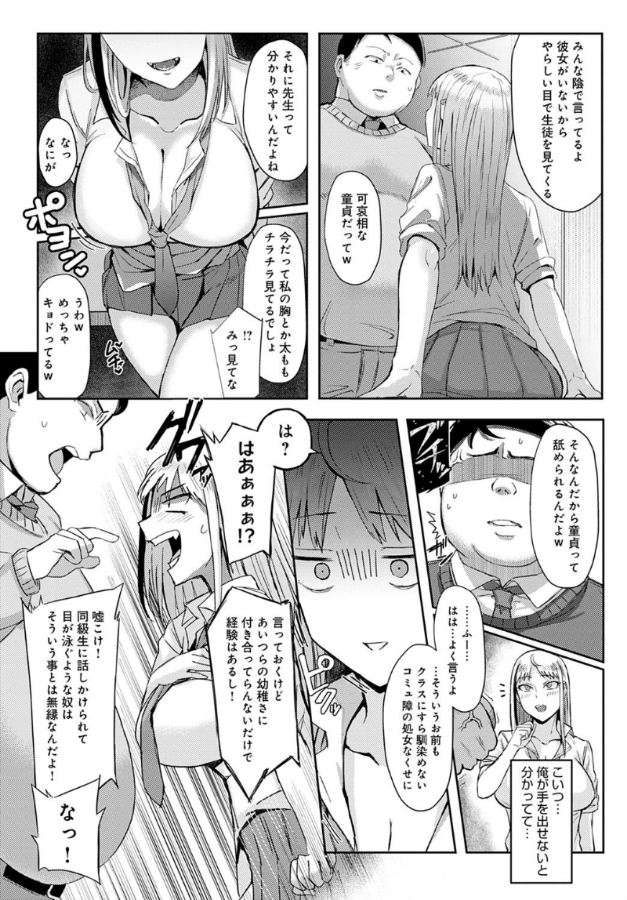 元陰キャのくせに教師に向かって童貞いじりをする目崎に、お前も処女だろと言い返すと、顔真っ赤にして慣れない手コキで反撃!!
