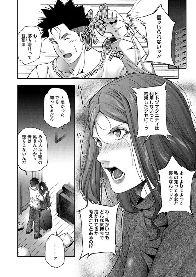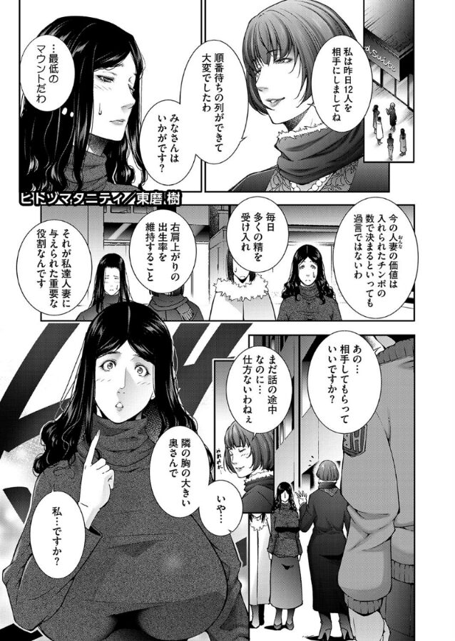 出生率対策として、妊娠可能な人妻はフリーセックス&膣内射精が義務付けられている。なにかと対抗意識を燃やしてマウントを取ってくる知り合いの人妻から許しがたい話を聞いてしまった。なんとヒトヅマタニティを利用しないと約束していた夫が彼女を抱いたというのだ