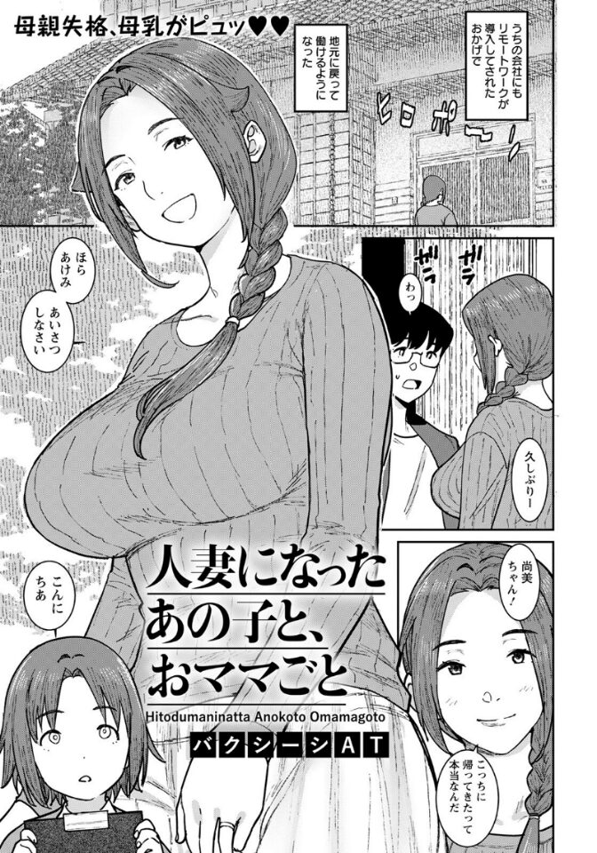 かつての幼馴染と久しぶりの再会。娘もいる人妻の彼女とふとしたきっかけから禁断の関係に。おっぱいから母乳を生搾り、娘に気づかれないようこっそりセックス!
