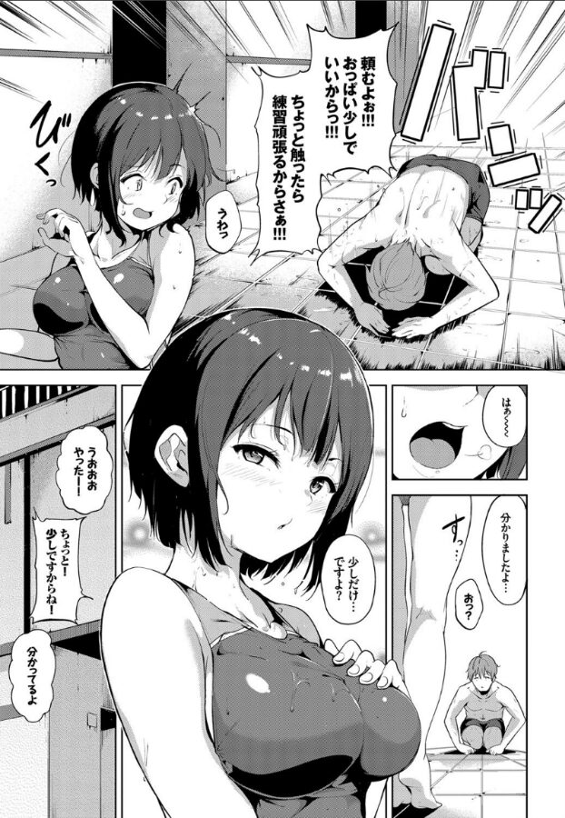 佐倉との競泳勝負に勝った和哉。勝ったら何でも言う事を聞くという約束の下、やらせてくれと佐倉にお願いする! が、結果は玉砕…諦めずに頼み込むと胸だけ触らせてもらえる事に! しかし、当然それだけで終わるわけもなく…!! むちエロ作家が贈るフェチH!
