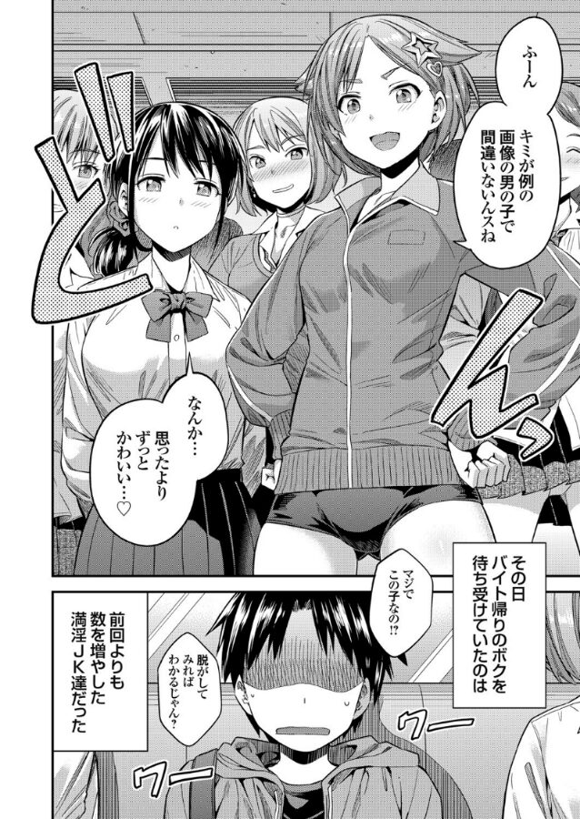 美少女孕ませ職人・日月ネコが搾精大好き極エロJKをねっとり艶やかに魅せる短編連載後編!!数日前、通勤時に間違えて女性専用車両に乗り込んでしまった見た目少年風の25歳の青年は、JK痴女達に襲われてしまい貴重な童貞を失ってしまった。そしてある日の退勤時、急いで帰りの電車に乗車し今度は間違えて女性専用車両に乗らずに済んだと安心していると…なぜか自分の目の前には前回よりも数を増やした満淫JK達がいた。もしや前回の痴女達の知り合いかと焦るも、その日乗っていた車両は女性専用車両ではない。何も悪くないはずと主張すると、JKの中の一人である昌音(あきね)は先輩達が独り占めして教えてくれないから捜すの苦労したと言うなり、自分達が集まるところが女性専用車両だなどと言い放つ。かわいい男の子の精搾与奪の権は全て自分達JKにあると言った途端、昌音は青年のパンツを下ろして性器を露出させる。その大きさにたじろぎながらも自分がいままでイかせてきたオッサン達と大して変わらないと強がると、この子はまだ本気出してないと叶奏(かなで)がつぶやき、本性暴いてあげると有無を言わさず濃厚フェラが始まってしまう!!