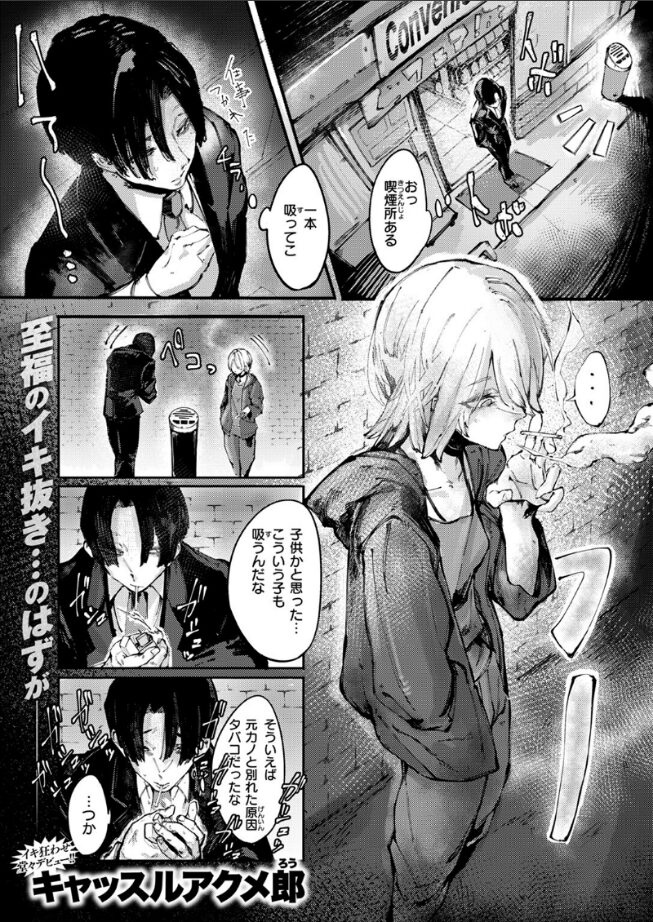 | タバコに火が付かない事にキレる主人公の顔が怖かったけど、顔に出てしまい一緒に吸っていた女の子を怖がらせてしまう所が面白かったです。 ライターを貸してくれた子は男の子だと思っていたのに、ボーイッシュな女の子と知って驚いたし、見た目に反して女性らしいスタイルなのが興奮しました。 思わず見とれてしまい、タバコ所ではなくなっている主人公が面白かったけど、貸してもらったライターに書いてある文字を見た瞬間、目が飛び出そうなほど驚いているのが面白かったです。 クールな女の子が、バイトからの電話に焦る所が可愛いと思ったし、主人公が女の子の趣味をフォローしたつもりが、なぜか一緒にホテルに行くことになるのが面白かったです。 |
