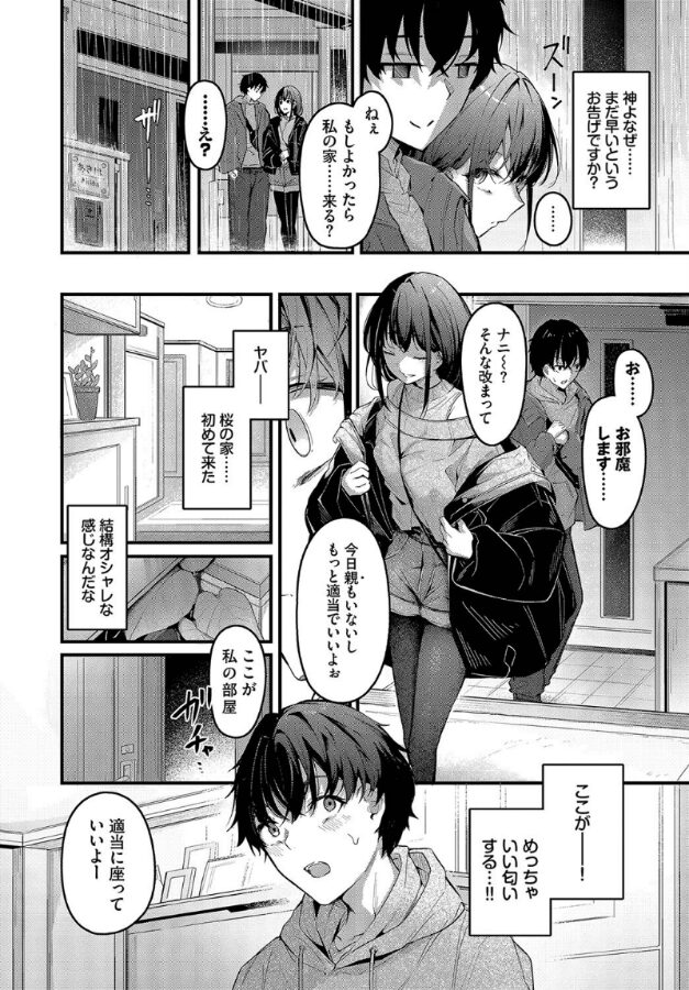 【焦れた二人の距離を縮める雨…ウブな男女の甘い初体験!】人気絶頂コミッカー・くっきおーれが描く、もどかしさに胸キュン必至の純愛譚♪桜とつきあい始めて3か月になる駿。ウブな二人がいじらしく距離感で悩み続ける中、まさかの雨でデートは中止…。分かりやすく落ち込んでいると、桜が親が不在の自宅に招いてくれる。 人目のない密室に二人、一途なキモチがあふれだした二人の距離は急接近し始めて!?漏れる吐息を優しくかき消す雨音…待ち焦がれていた甘くセツない初体験♪