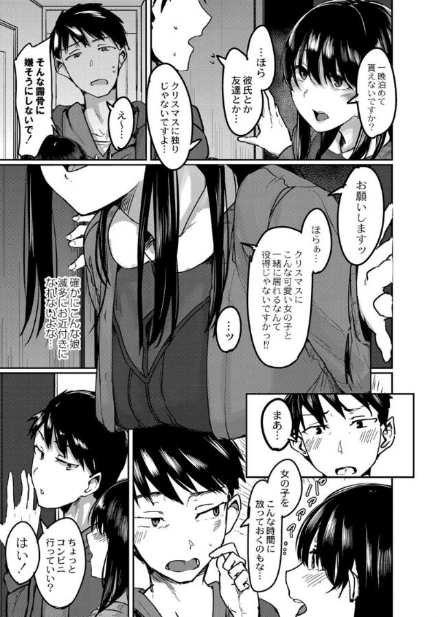 同じマンションの男女をテーマにした群青劇。第四回は隣の部屋に住む男女を描く。クリスマスの夜、鍵と財布を失くしてしまった隣人に一晩泊めてくれと頼まれてしまった主人公。断れずにともに夜を過ごすことになるのだが、誘われてしまいこちらも断れずに…