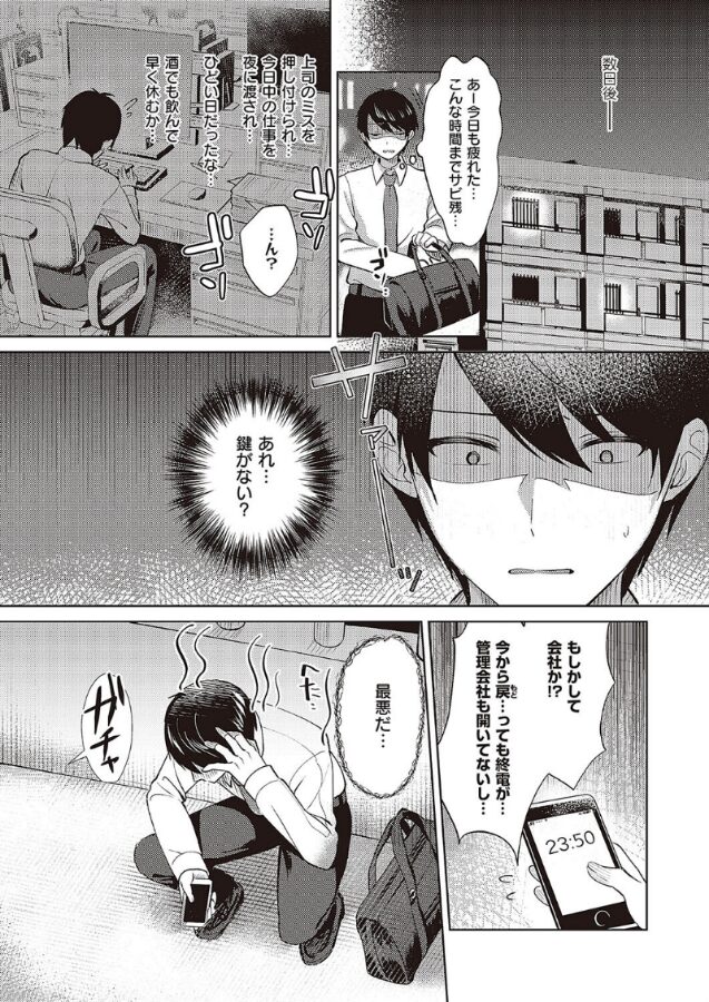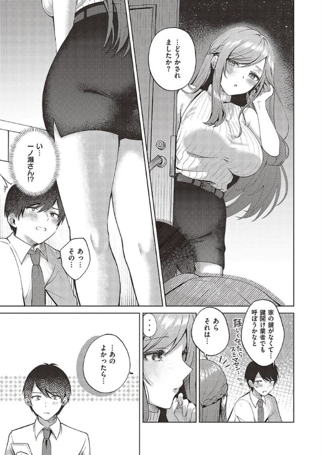 ある日、会社に鍵を忘れて家の前で呆然としていた俺は、一ノ瀬さんの部屋に泊めてもらえることに!
