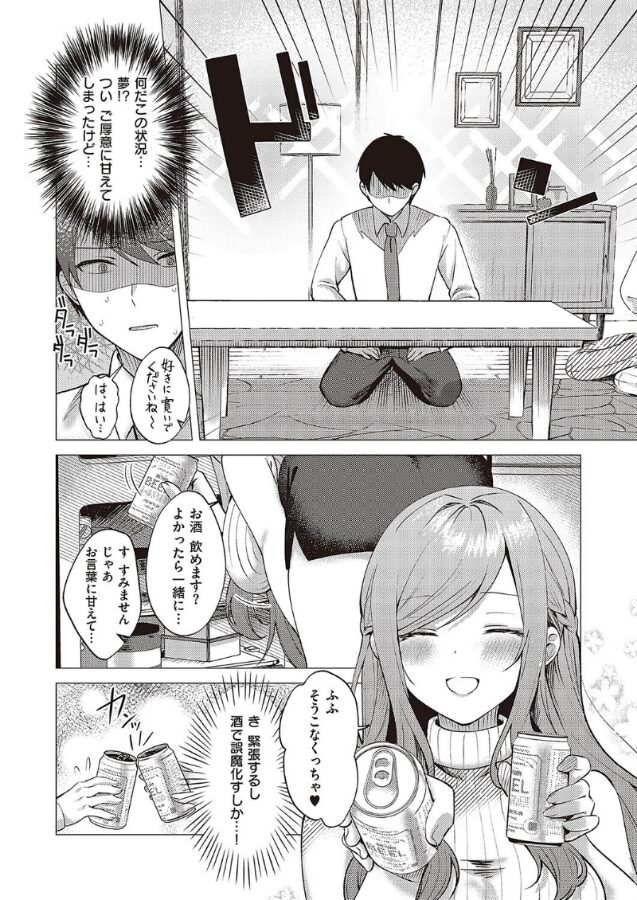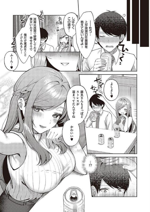 勧められたお酒を飲んですっかり酔っ払った俺は、会社の愚痴を延々と喋り続けてしまう。そんな俺を可愛いと笑ってくれる一ノ瀬さんも酔っているのか、距離が近い…どころか、