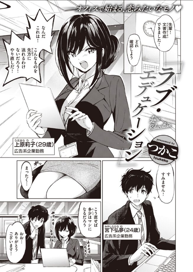 「宮下君ッ!……試して みて くれないか…?」広告系企業に勤務する上原莉子(うえはら りこ)は後輩・宮下弘夢(みやした ひろむ)のフォローで連日残業。そんなある日、宮下が急にふたりきりのオフィスで告白をしてきた。――僕が先輩を気持ちよくさせられたら 彼氏にしてください。その場では一蹴したものの、その夜から宮下の事がどうにも気になってしまい……。仕事では厳しいけれど中身はウブな巨乳OLと、チャラく見えるが押しが強い後輩の社内ラブHストーリー!!