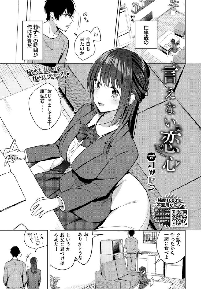 【募った想い実る…姪っコとのイケナイ恋♪】ピュアあまコミッカー・コットンが贈る、健気な乙女の誘い受けH!主人公・康弘は姪の莉子に対し、密かに恋心を抱いていた。家庭の事情で彼女とよく食事をしたり一緒に過ごす時間が多い一方で、成長していく彼女を見て一緒に過ごす時間も減ると思い、「莉子が恋人ならいいのになあ」と思いがけず声に出してしまう。そんな告白を聞いた莉子はキスして健気に迫ってきて…!?