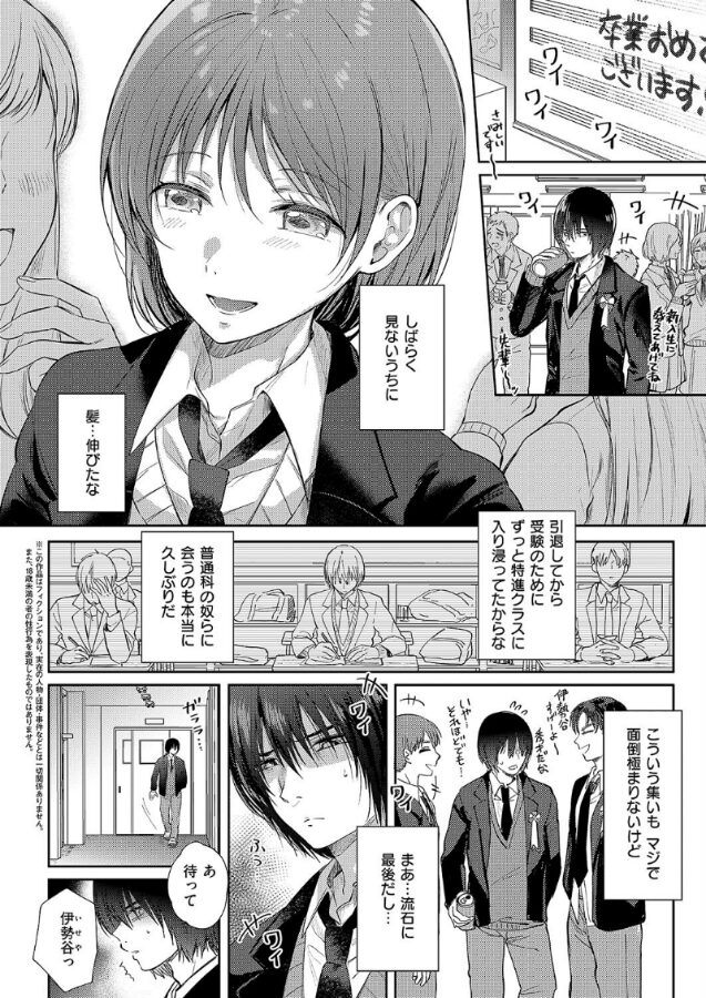 二人っきりでのトランペットの練習中、一度だけ性行為をした伊勢谷と憧れの美少女・依里。特に恋人になるわけでもなく、卒業式を迎えた今日、何気なく校内を散歩することに。あの日、セックスをした練習部屋の前で依里は、『ねえ、また見たいなー伊勢谷のち○ちん』とフェラをしてきて!?エモーショナルの申し子・源先生が贈る、人気者JK×陰キャの甘くほろ苦い青春シリーズ完結!!