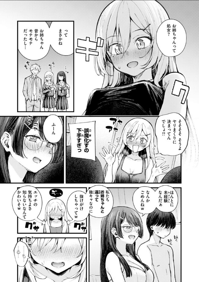 「私もえっちする!!!」陽キャでギャル、でも処女。そんな姉。陰キャで優等生、でも彼氏とはエッチしまくり。そんな妹。友達からの脱処女バナシを電話で聞かされた姉はイラつきながら、なんかストレス解消にオタクの妹に漫画を貸してもらおうと部屋のドアを開ける。そこには幼馴染の男のコとエッチしまくってる妹の姿が……!?どうやら二人はこっそり付き合ってたらしく……。きかんぼうな姉がきっかけで起こる、正反対な双子姉妹の突発3P♪濃厚30ページでお楽しみください!!