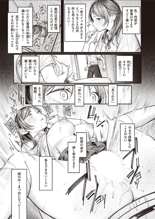 | ヒロインの女の子の作画が気に入ったので読んでみたのですが、ただのエロマンガとは違って謎の背徳感を感じる作品でした。 女の子のオナニーを目撃したシチュエーションからマンガが始まるのですが、なんだか主人公とヒロインのプレイを自分もトイレの外から音が聞こえて覗いてみているようなそんな感触を感じるエロさだった。 終始女の子の表情が素晴らしくて蕩けていっている描写は100点です。 プレイが展開していく場所がトイレというのもあって現実でもイメージがしやすくてまるで自分が通っていた学校で起きていた出来事のように感じた一品だった。 |