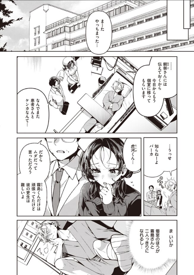 「出したい? でもだーめ♪」入院中も大暴れで手の付けられないヤンキー・虎河(たいが)くんと、そんな彼にも優しいナースの霧島(きりしま)さん。虎河くんが夜中に目覚めると手足を拘束されていて目の前には不敵に笑う霧島さんが!? ……駄々っコにはオシオキしないとね♪