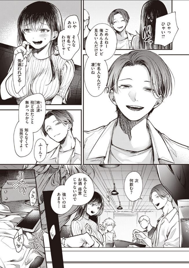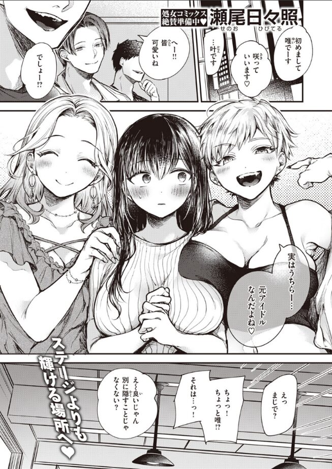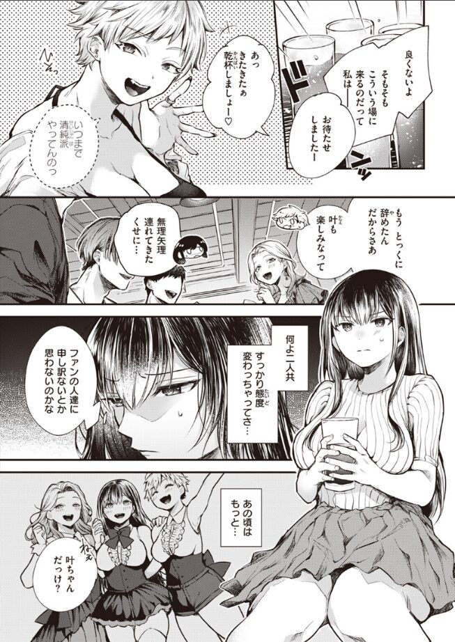 元アイドルの叶は、パッとしないまま解散し普通に就職した後もアイドルとしての振る舞いを続けていたものの、たまたま参加した合コンで出会った涼と酔った勢いで処女を卒業してしまい、そのときに忘れていったスマホを取りに行ったのをきっかけに、エッチにやりがいを感じてしまうところが興味深かったです。