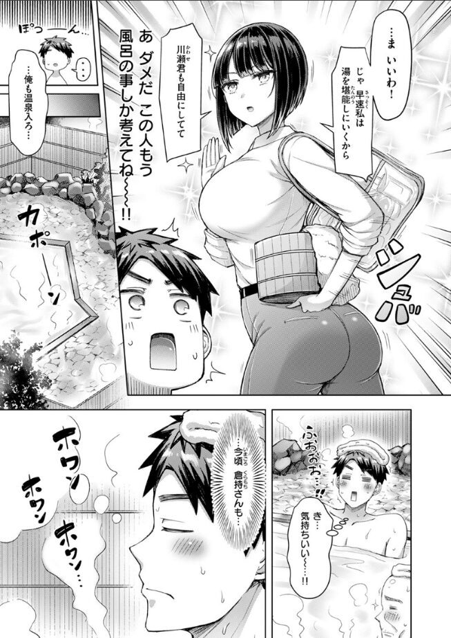 | 女上司ヒロインの倉持と出張に出かけた時に温泉旅館に宿泊して、酒で酔った勢いでセックスしてしまうストーリです。 可愛い浴衣を着てHシーンが行われるので和服フェチの方も満足できる内容でしたし、手マンや乳首攻めをされていくうちに倉持の巨乳が浴衣から露出していく様子が非常にセクシーでした。 普段押さえ込んでいた性欲を開放するかのように倉持が激しく騎乗位してくるシーンが迫力満点で良かったですし、下からペニスで激しくピストンされている膣内の様子が断面図で丁寧に描かれていてHシーンのクオリティが高かったです。 中出しされた瞬間に倉持が巨乳を揺らしながらアクメする姿がエロ可愛かったです。 |