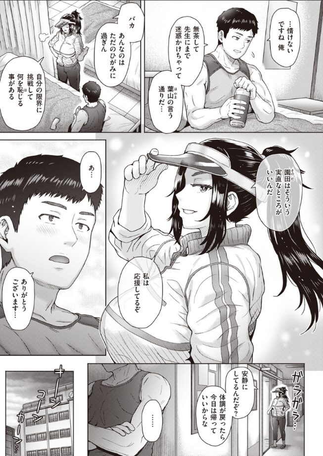 陸上部の副顧問である宮部先生は、女性ということもあり、鬼コーチのいないときは部員から舐めた態度を取られていたものの、コーチがいなくてもしっかり練習を続ける自身のことを認めてくれていたため好印象を持っていたのに、無理が祟って保健室のベッドで眠っていたのをきっかけに、じつは部員の葉山とデキていることを知るという衝撃にワクワクしました。