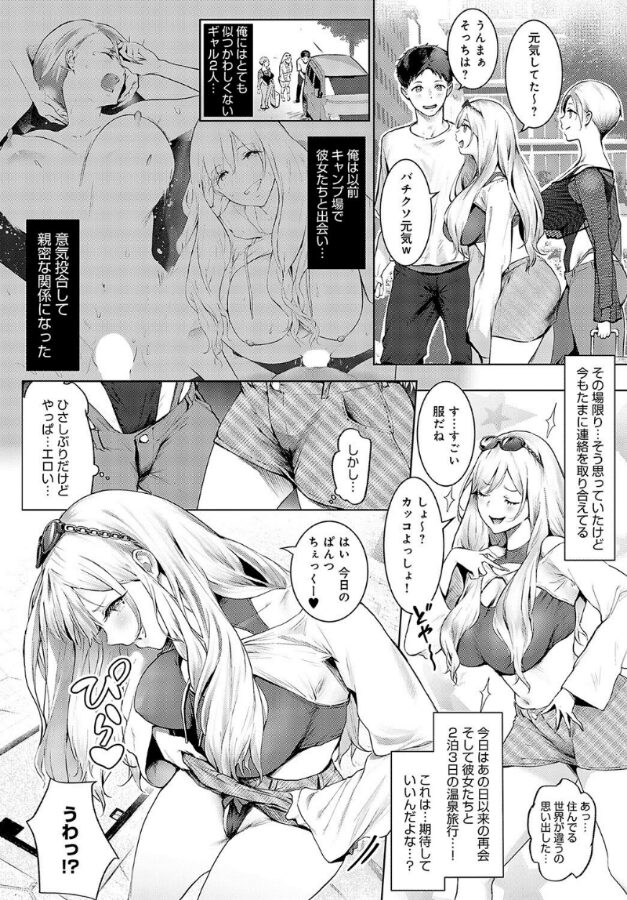 以前キャンプで意気投合してSEXまでしたギャル2人組、かりりんともっちーを連れて二泊三日の温泉旅行に行くことになった俺。車の中でフェラしてくる相変わらず淫乱な彼女たちとの旅行なんて、絶対にヤれると期待する俺…。旅館に着いて露天風呂を満喫していると「ココ混浴っしょ?」と二人がエロすぎる水着姿で乱入してきて――!? 久しぶりに二人の裸を見て限界突破の俺は、ヤッてヤッてヤりまくるッ!!ヤりたい放題の盛りギャル党・染岡ゆすら先生が贈る、淫乱イケイケギャルと露天風呂で盛り上がる3P♪