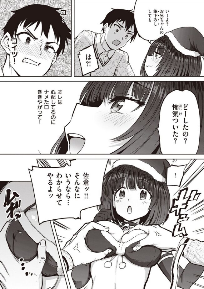 | 幼馴染ヒロインの佐倉にサンタのコスプレで誘惑されて、立場を分からせるために激しくセックスを行うストーリーです。 小馬鹿にしたナマイキな態度を取っていた佐倉がセックスの快楽を与えられていくうちに徐々に従順な態度に変わっていく様子が痛快でしたし、膣の奥をバックや正常位で責められてアヘ顔になって感じている佐倉のエロ可愛い様子に萌えました。 中出しのシーンが大きなコマで描かれていて迫力満点でしたし、膣の中でペニスが中出ししている様子がしっかり描かれていたので、セックスの快楽が伝わってきました。 サンタのコスプレ衣装が似合っていて可愛かったですし、最後まで濃厚なHシーンが繰り広げられていたので非常に満足しました。 |