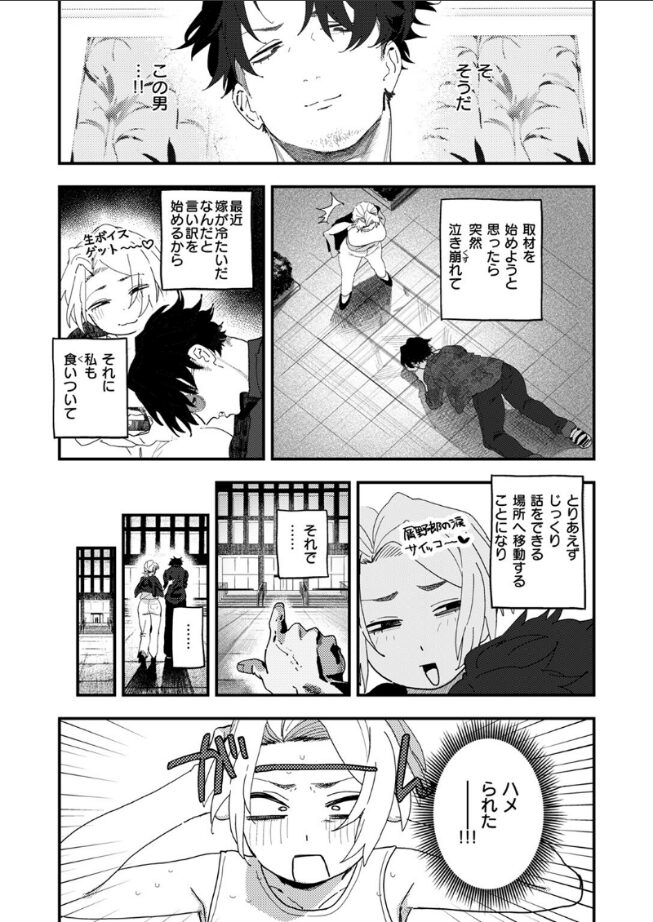 雑誌の取材中に睡眠薬を盛られてしまった多々良千夏が、取材相手の男性俳優の篠宮蓮司にセックスされてしまうストーリーです。