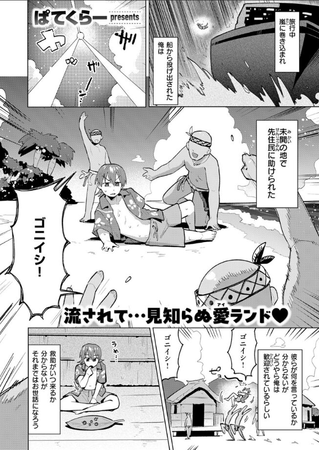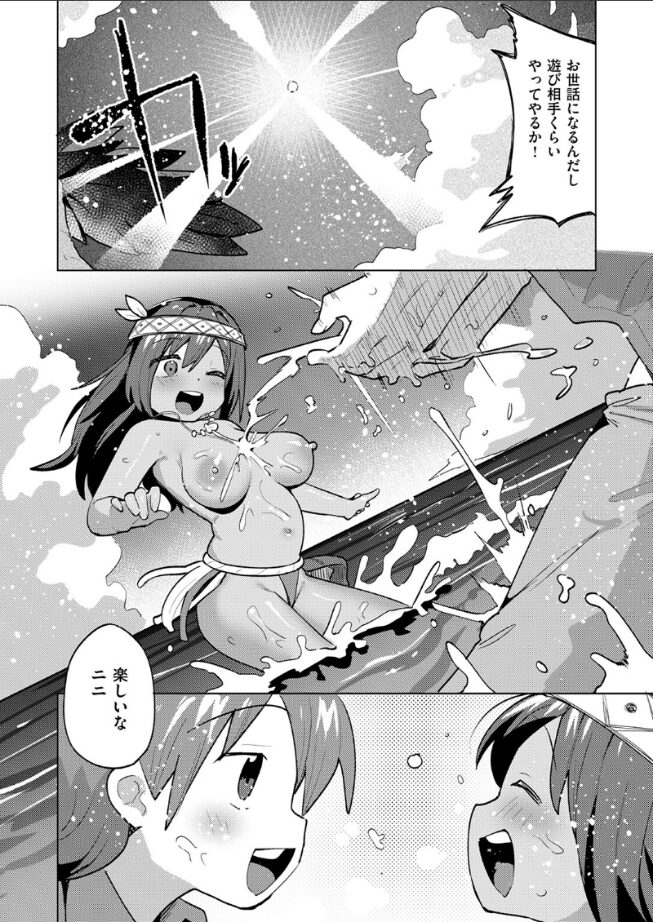 | 漂流の末に流れ着いた先が「南国っぽいどこか」なので褐色娘好きには溜まらん感じの作品。 ヒロインのニニは褐色であることに加えて、ちょっと丸みがあるディフォルメっぽい可愛らしい感じのキャラデザなのも良い。 性格がとにかく可愛らしく、非常に人懐っこい娘である。 転生物でもなろう系でも無いのだが、日常から遭難を経て非日常的な場所で可愛い娘に好かれて…という展開なので転生モノが好きな人にもおすすめ出来る。 開放感のある南国で可愛い娘と恋仲になって、という夢のような話。 …なのだがラストは意外な展開を見せる。 これは読んでのお楽しみという事にして置いた方が良い。そう来てしまったかという感じ。 |