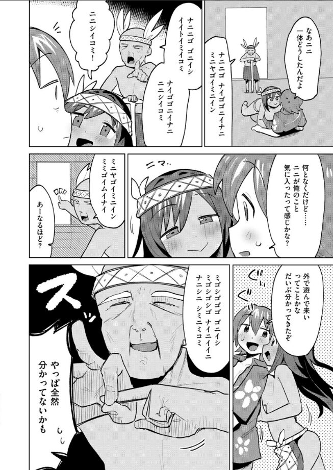 | 謎の部族の美少女とHをする作品。 旅行中に嵐に遭い、船から投げ出された「栄一」は未開の島に漂着します。 現地人と思われる部族に助けられ、「ニニ」という美少女と仲良くなりHをする展開に! おっぱい丸出しのニニが明るくてエロ可愛いです。 言葉が分からなくても一緒に過ごし、心を通わせていく二人の様子に少しほっこりします。 ニニが積極的に誘い、激しめのHをするのがイイですね。 栄一の手マンで勢いよく潮吹きするのが卑猥です。 挿入後、もっとして欲しいと言わんばかりに腰を動かすニニに興奮します。 目がハートマークになり、中出しされてイク場面がエロエロです。 一見すると甘いイチャラブに見えますが、ラストで意外な結末になるのが印象的でした。 |